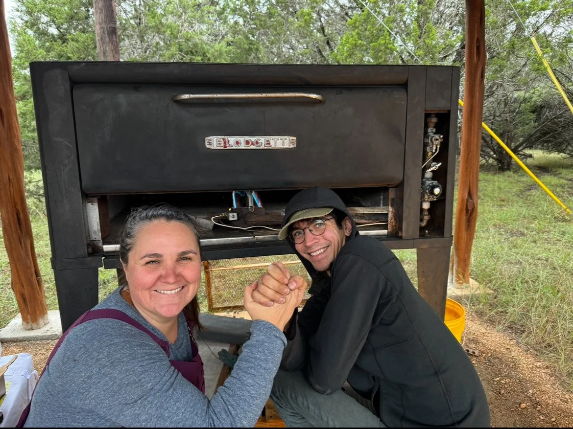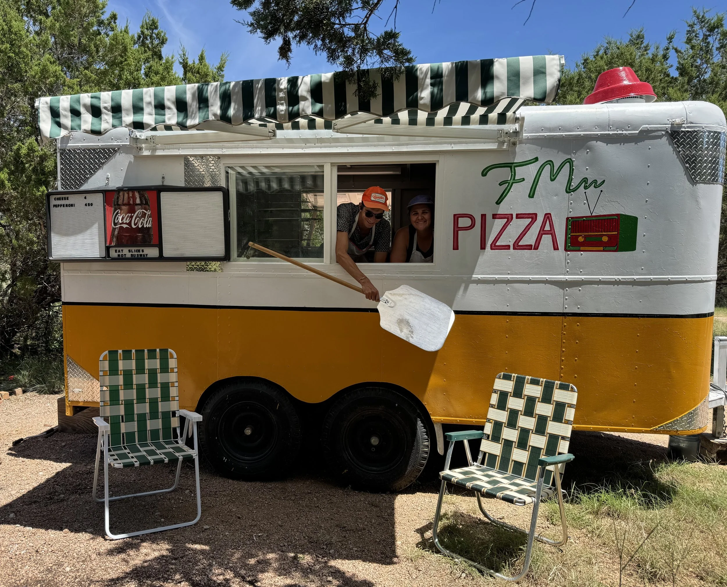 John Messina and Christine Daly met in 2011 while serving an Americorps term in Austin with the Texas Conservation Corps. Later as roommates in Austin, they built a brick pizza oven in the backyard and would host parties with a “bring your own topping” theme. They bonded over their love for fermentation science and both would end up in the world of winemaking and grape growing. It was here where the idea arose to translate the skills from winemaking to pizza making. Christine,as a native New Yorker wanted to bring the concept of the New York slice shop to Wimberley, so they bootstrapped the business, and renovated an old deck oven and handmade trailer to bring the idea to life.